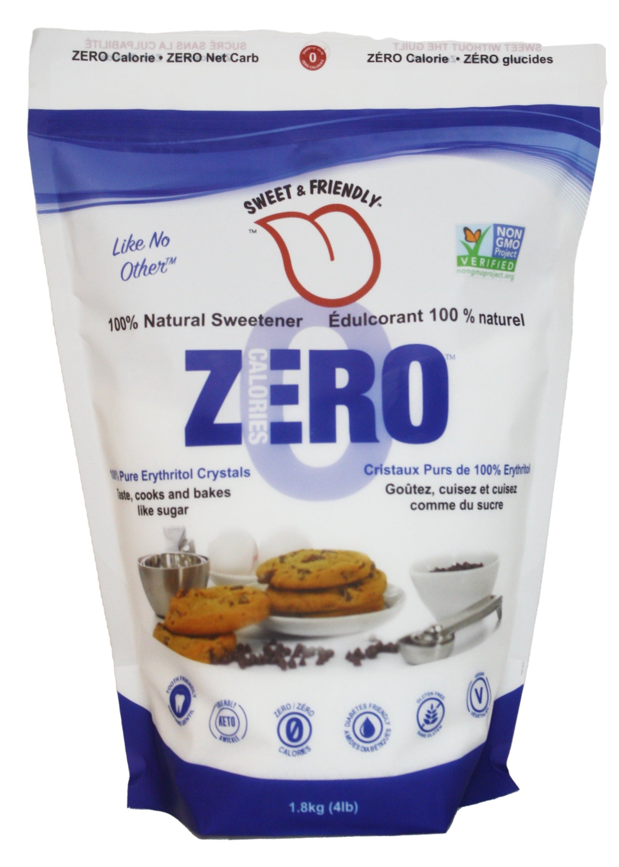 100% natural erythritol is nature’s ZERO calorie, ZERO net carbohydrate sweetener. Erythritol looks like sugar, bakes like sugar and has 70% of the sweetness of sugar. Eyrthritol is gluten free and derived from non-gmo corn.